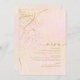 Un arrière - plan d'aquarelle dans les tons or rose est surmonté d'une abstraite de lignes dorées fines et d'effets lumineux scintillants pour créer les pièces de cette belle suite mariage. La carte "Menu" mariage présente également une calligraphie élégante et une disposition hors du centre pour séduire visuellement. Ajoutez facilement vos propres initiales, la date du mariage et les sélections de menu en utilisant le modèle fourni. Recherchez ID867 pour voir d'autres pièces et choix de couleurs pour cet ensemble.