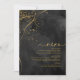 Un arrière - plan d'aquarelle dans les tons gris-fusain au noir est surmonté d'une abstraite de lignes dorées fines et d'effets lumineux scintillants pour créer les pièces de cette belle suite mariage. La carte "Menu" mariage présente également une calligraphie élégante et une disposition hors du centre pour séduire visuellement. Ajoutez facilement vos propres initiales, la date du mariage et les sélections de menu en utilisant le modèle fourni. Recherchez ID867 pour voir d'autres pièces et choix de couleurs pour cet ensemble.