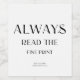 Announce your pregnancy in style with our modern and fun " Always read the fine print" wine label.