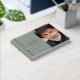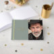 In Loving Memory, Funeral / Celebration of Life photo guestbook, with a simple, minimal, and elegant design with a soft velvety hardcover in sage, real foil in stripes, and text. Ability to change "In loving memory" to "Celebrating the Life of" by using the template text box. Choose from three size options and three foil colours: gold, silver, or rose gold. Personalize it with your loved one information on the front and spine and add on the back any message you like.