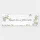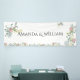 This exquisite wedding banner is adorned with an elegant floral motif featuring delicate roses and hydrangeas nestled among lush green leaves. The spouse names are printed using a classical serif font which further enhances the overall sophistication.
