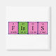 Finis spelled out as F In I S (Fluorine Indium Iodine Sulfur) on a magnet for the scientist in you.
