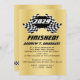 Finished, done, graduated! Chequered flags racing theme invitation in gold, black and white for your high school senior who has made it to the finish line!