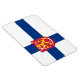 The Finnish coat of arms surmounted on the blue cross of the Finnish flag.