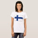 The front of this t-shirt boldly displays the Finnish flag with its distinctive offset blue cross on a white background. This is matched at the back by an attractive map of Finland.