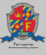 Knights style shield monogram F art name hoodie or transfer to a tee, in shades of red, yellow, blue and grey. Personalize with your own name, this example is for the name Finn Fair warrior A brave wandering explorer. Unique crest drawing, featuring a lion crown, star and the letter F graphic by Sarah Trett for www.mylittleeden.com and namesense