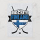 Shield shaped logo with crossed hockey sticks and puck, and a flag of Finland with the text 'Hockey Finland'. Cool destroyed look! Perfect for Finnish ice hockey players and fans! Great for t-shirts, hoodies, hats, stickers, buttons, keychains, mugs and so much more. Items can be personalised, so you can add any text, names, numbers etc to anything. Version for light coloured apparel.