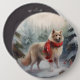 Finnish Lappund Dog in Snow Christmas 6 Inch Round Button