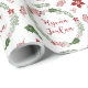Green and red Christmas holiday wreath design gift wrap with the words Merry Christmas in Finnish: Hyvää joulua