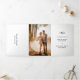 Contemporary and modern tri-fold wedding invitation featuring a simple and minimal design with your three initial monogram along with your names and wedding date in bold typography. The back has your favourite photo. This minimalist black and white typographic wedding invitation can be customized to any colour you choose in the design editing tool.