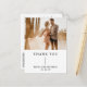 Contemporary and modern wedding thank you postcard featuring a simple and minimal design with "Thank You" along with your names and wedding date in bold typography below your favourite photo. The back has your personalized message. This minimalist black and white typographic wedding thank you postcard can be customized to any colour you choose in the design editing tool.