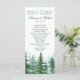 Wedding program order of ceremony with rustic watercolor fir trees on a choose your own colour background. You can add the text of your choice to the front and back in the font style you prefer.