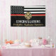 This design features a firemen's flag with black and white stripes, and a thin red line stripe as well. "Congratulations" and a fireman's badge sits above the name of the graduating firefighter. This design also works great for retiring firefighters, lieutenants, or chiefs. Celebrate in style!
