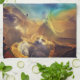 Blue and yellow/gold nebula abstract made from alcohol ink art.