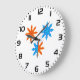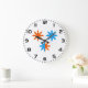 Keep time with a piece of functional art with this fire and ice eight point star wall clock. The vibrant symmetrical graphic of orange and blue elements serves as a stunning backdrop for the clock face. This modern geometric timepiece is an excellent focal point for a home office, living room, or studio. Featuring a high contrast celestial starburst design, this clock captures the essence of opposing natural forces. Add a touch of professional artistic flair and sacred geometry to your interior decor with this unique elemental star clock.