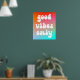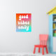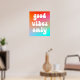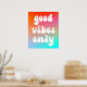 A groovy retro "good vibes only" typography design on a vivid orange, hot pink and aqua blue gradient on a poster.