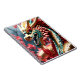 A menacing fire breathing dragon with vibrant gold blue and red scales, with white pearl eyes showcasing its terrifyingly large teeth, realistic shading and textures, high detail, close-up angle, dark background with highlights, digital painting 4k resolution, cinematic lighting, fear-inducing atmosphere.On this artificial intelligence photo.