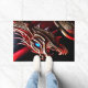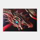 A menacing fire breathing dragon with vibrant red and gold scale, with blue eyes showcasing its terrifyingly large gold teeth, realistic shading and textures, high detail, close-up angle, dark background with highlights, digital painting 4k resolution, cinematic lighting, fear-inducing atmosphere.On this artificial intelligence photo.