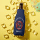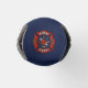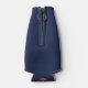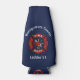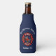 Stylish bottle cooler design for firehouses, firefighters and their families, features red generic fire department logo on dark blue background. Customize with city or county department details or firefighter name in modern white font