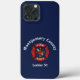 Stylish design for firehouses, firefighters and their families, features red generic fire department logo on dark blue background. Customize with city or county department details or firefighter name in modern white font