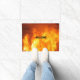 A doormat featuring a photo of a fire.