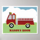Our super cute Firetruck is ready for your personalization. You can also click the "customize it" button and then the "add text" button to add more personalization (than what is shown) to the print. You may want to add some special numbers to the truck. These are available as an inexpensive print only, or you can add a mat and/or frame.
