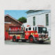 Are you looking for a gift for a fire fighter? This design of a fire engine parked in front of its fire station would be a perfect choice and make a great gift.