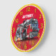 A unique personalizable fire engine decorative wall clock. A great addition to any home. Also makes a great gift idea.