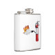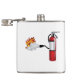 The best way to put out a fire is with a fire extinguisher. This design has a traditional red fire extinguisher that is squirting some foam on some flames to put them out. This fire extinguisher putting out a fire design looks great on this flask. Perfect for yourself or as a gift
