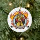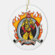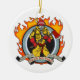 Ultimate fire fighter ornament featuring fire fighter in full fire gear with fire axe! Raging flame background with Live to Fight Fight to Live banner! Fear No Fire!