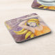 Coasters with my mixed media painting Fire Goddess Dancing on it. The painting is a close-up of a woman dancing with poi fans.