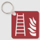 Fire ladder and flame icon on red background. Custom text at the back side.