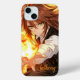 A cool design in the anime style of a yound fire mage casting a fire spell, with personal name tag, which is editable by you to alter to what name you want. Generative content.