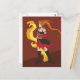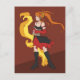 Postcard with a flat-colour print of a girl who represents the spirit of fire. Hot!