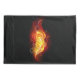 Bright peacock feather made of fire and flame on black background.