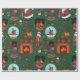 This is a vibrant and culturally rich seamless wrapping paper pattern featuring a medley of African American-inspired Christmas and Kwanzaa elements set against a deep, intricate green background. The background is filled with swirling, paisley-like patterns, adding a dynamic texture.