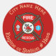 This custom round sticker is decorated with the Fire Rescue Maltese Cross and can be customized above with the name of a town or city and below with the engine or station number, or any other information you would care to substitute.