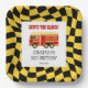 Fire Truck Black Yellow Chequered 3rd Birthday Paper Plate
