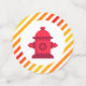 Celebrate your son's or daughter's birthday with this cute fire helmet birthday party stickers. Red helmet is front and centre with yellow, red and orange stripes. Can easily be changed for your kiddo's first birthday (or any age!). Just change the text and the number on the helmet and you're ready to sound the alarm!
