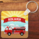Fire Truck Firefighter Personalized Name Kids Room Keychain