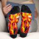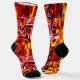 Pictured in a oil paint design is a fire engine entering a fire storm