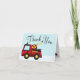 Chubby red fire engine and light blue gingham thank you note card to compliment our baby shower invitations.