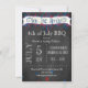 Ce tableau de bord 4 juillet invitation à la fête invitation vos invités à votre barbecue, cuisine ou pique-nique cette année en style. Fait dans un style de tableau de bord à la mode, vintage, avec une belle typographie, vous personnalisez facilement cette invitation avec vos informations en utilisant le modèle donné. Les pétards rouges, blancs et bleus, et les subtiles étoiles arrière - plans, donnent à ce invitation du quatrième juillet un peu plus de couleur et d'attrait.