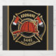 Firefighter NAME Fireman Fire Department - Emblem with Red Helmet and Axe. Customize with your Name, Station/Dept Number and location.