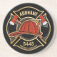 Firefighter ADD NAME Fire Station Department Badge Coaster
