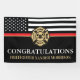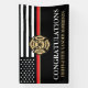 This design features a firemen's flag with black and white stripes, and a thin red line stripe as well. "Congratulations" and a fireman's badge sits above the name of the graduating firefighter. Celebrate in style!