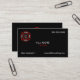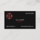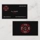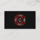 Red and white Fire Department badge logo on black. Great business card for firemen and first respondents.