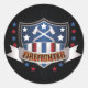 Firefighters Crest with crossed firefighting axes against a red, white and blue patriotic crest! Star burst background with surrounding red and blue stars! Firefighter banner, perfect for firefighters and firefighting supporters! Customizable firefighter gift!