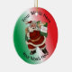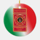 This custom Christmas ornament is decorated on one side with the Firefighter Division Chief shield. The reverse side is decorated with an image of Santa Claus carrying his bag of goodies, and can be customized with names, dates, etc.