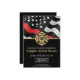 This design features a firemen's flag with black and white stripes, and a thin red line stripe waving in the wind. A fireman's badge sits above all of the party details for the graduating firefighter. This design also works great for a retiring firefighter, lieutenant, or chief's retirement party.